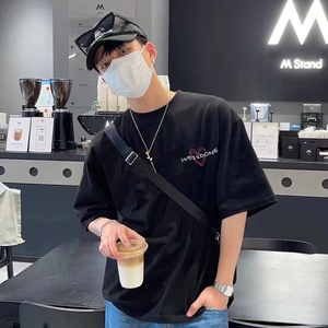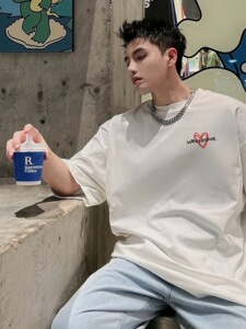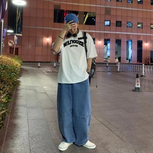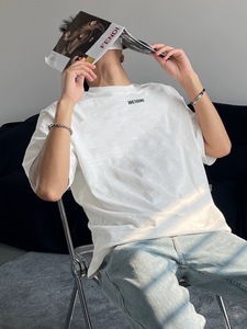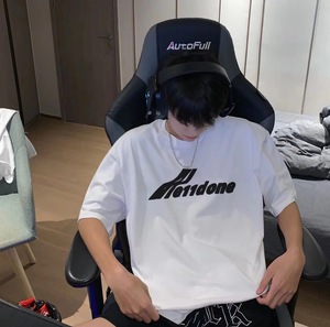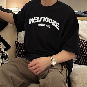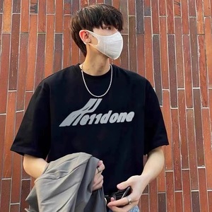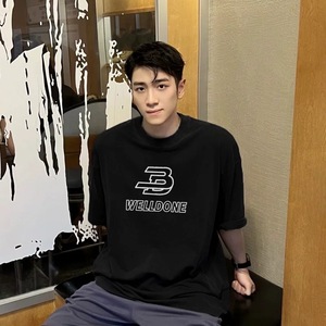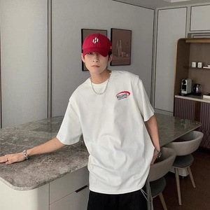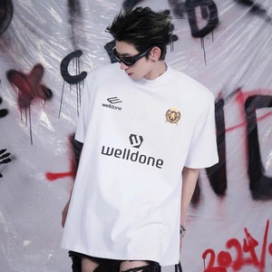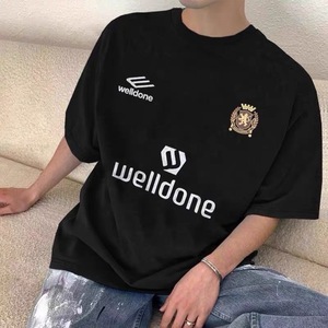 クロスボーダー卸売 25s トレンディなブランドヘビーウェイト WELL ニッチアメリカンスポーツルーズ男性と女性のカップルプリント半袖 T シャツ