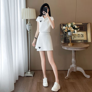 ヨーロッパとアメリカの国境を越えた貿易夏の半袖ファッションカジュアルスーツファッショナブルな年齢軽減の小さな香りの白いスカート 2 点セット