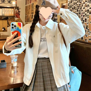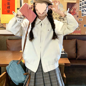 アメリカンレトロな白いワークジャケット女性のための春と秋 2025 新しいデザインダブルジッパールーズショートジャケット