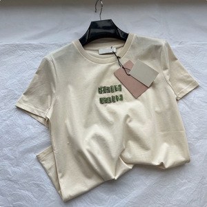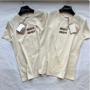 LIITUIO 高精細 24 夏の新作レディースヘビーレタービーズダイヤモンド年齢軽減純綿半袖 Tシャツトップ