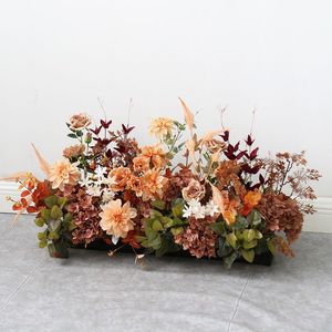 レトロな花飾り、茶色の花の列、壁掛け、ショーウィンドウ、結婚式の装飾、シルクフラワー、イベントの通路装飾