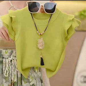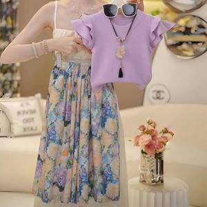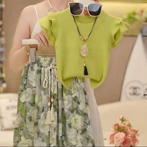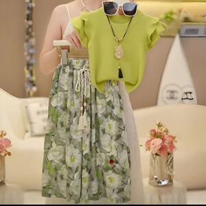 高品質オリジナル大量既製グリーンフラワーパンツフライスリーブトップツーピースセット