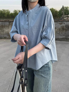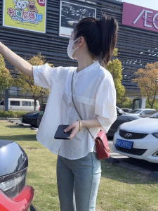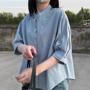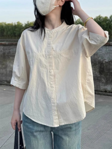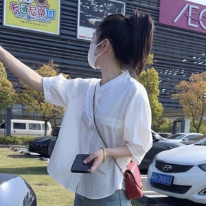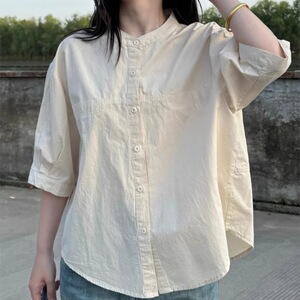 小さめラウンドネック半袖シャツ2025夏シンプル万能ルーズシャツ万能カバー韓国風半袖トップストレンド