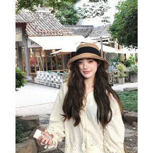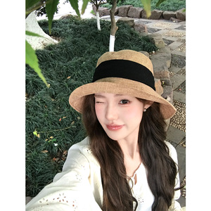 日本製綿麻フィッシャーマンハット、リボン付き、カジュアルで多用途、顔見せ用の小さな日焼け止めサンハット、アウトドア旅行用の顔見せ麦わら帽子