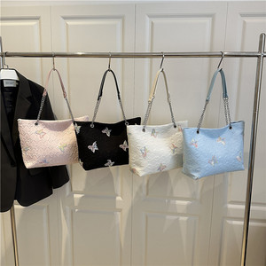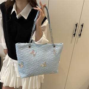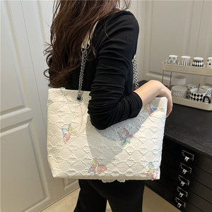 卸売甘いスタイルチェーンハンドヘルドトートバッグレディースバッグ 2025 夏の新チェック柄蝶ショルダーバッグトレンディなクロスボディバッグ