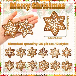 跨境圣诞雪花姜饼木制悬挂圣诞姜饼装饰带绳子适用于圣诞派对假日