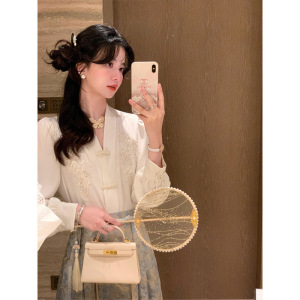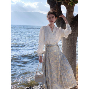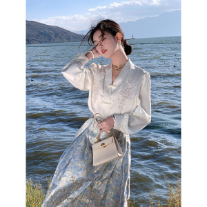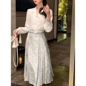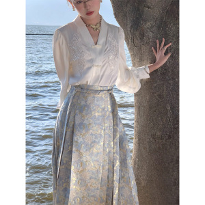 洛陽春光の新しい中国風の女性の馬面スカート中国風刺繍シャツスーツ春の高級ツーピースセット