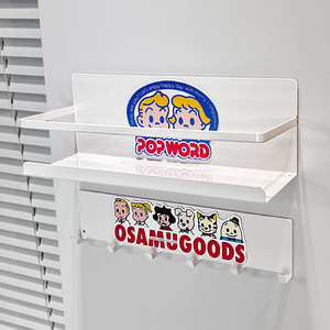 オフホワイトの収納ラック、フック列、青い丸、男女の家族写真[磁気スタイル]