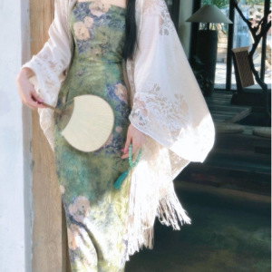 中国風タッセルジャカード日焼け止め服女性の夏のチャイナドレススカートと小さなショール薄いカーディガンジャケットブラウストップ