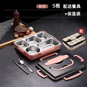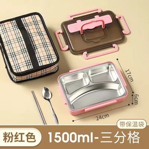 304 食品グレード [ガールズパウダー]-1.5L 3コンパートメント + 食器 + 保温バッグ [Sサイズ]