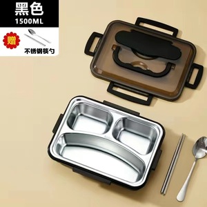 304 食品グレード [エレガントブラック] - 1.5L 3コンパートメント + 食器 + 保温バッグ [Sサイズ]