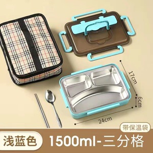 304 食品グレード [フレッシュブルー]-1.5L 3コンパートメント + 食器 + 保温バッグ [Sサイズ]