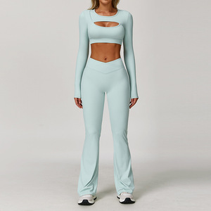 Zechuang クロスボーダーコントラストカラーヨガスーツ美しい背中スポーツ耐衝撃フィットネススーツ女性のタイトなカジュアルスポーツスーツ 4501