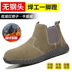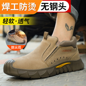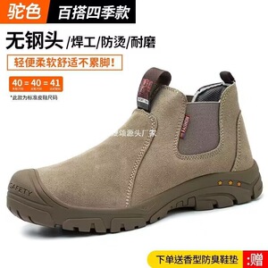 男性用の新しいハイトップスチールフリーヘッド労働保護靴、カジュアルで軽量、溶接工のスリッポン、火傷防止、耐摩耗性の建設現場作業靴