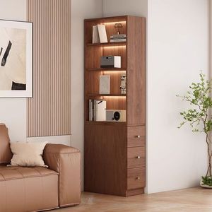 本棚 無垢材 極細収納 ハイキャビネット コーナー本棚 床置き本棚 テレビキャビネット サイド隙間収納 収納キャビネット