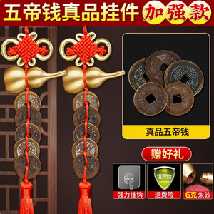 ドアツードア真鍮ひょうたん本物の銅コインストリングゲート寝室プレス敷居中国の縁起の良い結び目ペンダント五帝マネー