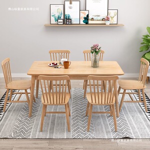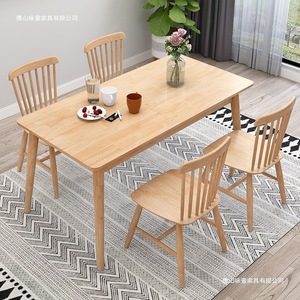 北欧全無垢材ダイニングテーブル家庭用小型ダイニングテーブルと椅子の組み合わせ4人用6人用ログカラー長方形ダイニングテーブル