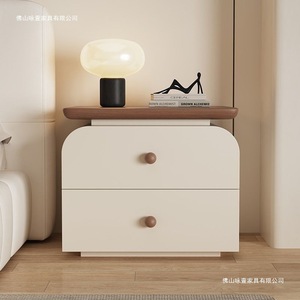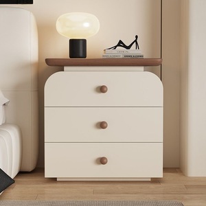 無垢材のベッドサイドキャビネット、中古クリームスタイル、イタリアのミニマリスト、小さなアパート、シンプルでモダンな寝室の収納キャビネット、取り付け不要