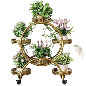 フラワーシェルフリビングルーム床置き可動バルコニー収納ラック多層ライト高級ハイエンド2024新しいアイアンアート