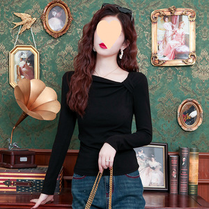 プリーツスラントカラー長袖レディースデザインフェミニン2025春秋新作外国風シャツボトリングシャツトップ