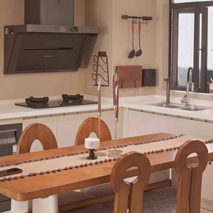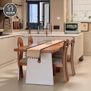 ログスタイル無垢材ダイニングテーブルと椅子の組み合わせB&Bレストランダイニングテーブルクリームスタイルリビングルームホーム小さなアパートティーテーブル