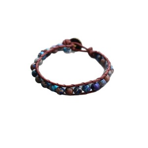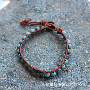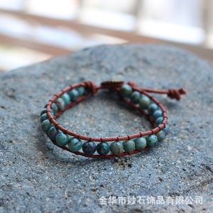 クロスボーダー 6 ミリメートルラウンドビーズ天然石フェニックスパイン編組牛革ロープ巻きビーズブレスレットボヘミアンスタイルジュエリー