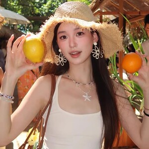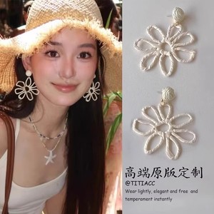 女性の旅行や写真撮影用の夏のわらで編まれた誇張された大きな花の手作りイヤリング、海辺の休暇スタイルのイヤリング、新鮮でファッショナブルなイヤリング