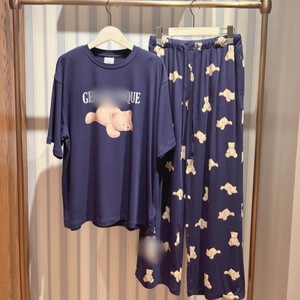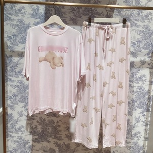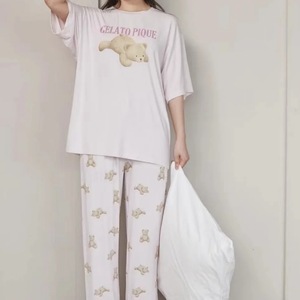 ソフトな新しいアイスクリームプリントソフトラウンドネッククマ漫画半袖ズボンフルプリントパジャマ女性のホーム服