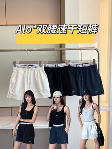 25 夏 Alo レターステッチウェビング速乾性ショーツ女性のダブルウエストスポーツ通気性カジュアルルーズオールマッチショーツ