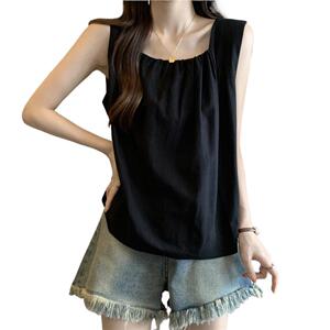 大きいサイズの女性の服はお腹をカバーし、年齢を軽減します。女性の夏の太ったmmのためのノースリーブベストTシャツ、スリムで肉感のあるアウターウェアスクエアカラートップ