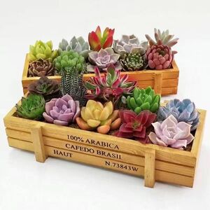 厳選された20個の多肉植物 + 2個のヴィンテージ木箱 + 土 + カラーストーン