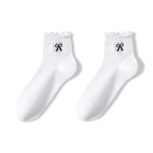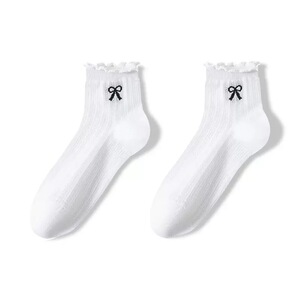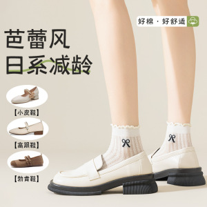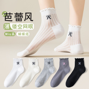 Zhuji 靴下女性の夏の薄い靴下リボンミッドチューブソックスメッシュ通気性バレエスタイル吸汗性 JK 女性の靴下