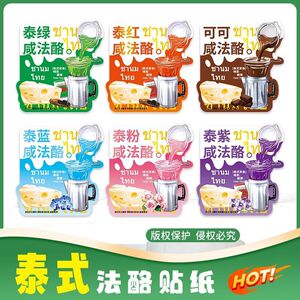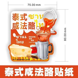 正版泰式咸法酪贴纸奶酪不干胶贴标签500/700ml奶茶杯可D制贴纸