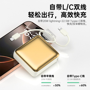 小さな正方形には、高速充電用のケーブルが付属しています。窒化ガリウム充電ミニ電源バンク 10000 mAh 22.5W 超高速充電ミニ