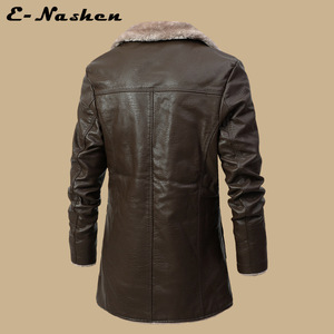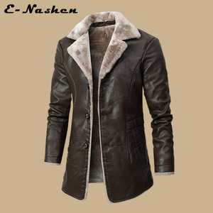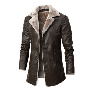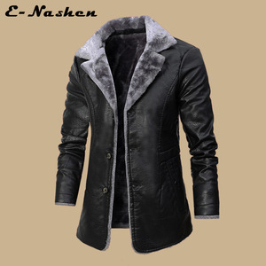 メンズミドル丈レザージャケット、中高年秋冬ビジネスヨーロッパサイズプラスベルベットラーペルスーツ、男性用ファーファー付きジャケット