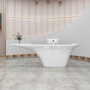 モダンなグラスファイバー特殊形状塗装フロントデスク、ビューティーサロンレジカウンター、クリエイティブなホテルロビー受付テーブル