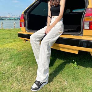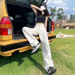 阔腿牛仔裤女高腰白色2025夏季新款显瘦垂感拖地宽松窄版直筒裤子