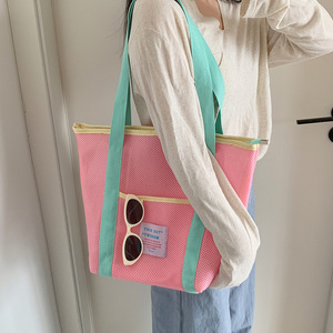 見栄えの良い大容量メッシュ収納袋ポータブルショルダー収納袋キャンプピクニックスナックバッグスーパーマーケットのショッピングバッグ