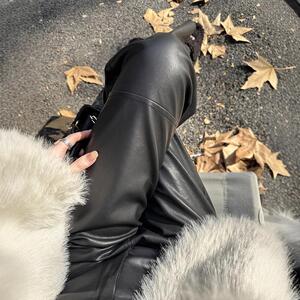 女性のための黒のPUレザーパンツ2024春と秋の新しいハイウエストスリムカジュアルストレートパンツ小柄な9点シガレットパンツ
