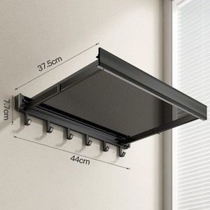 [マジックナイトブラック] 44cm 折りたたみ式インビジブルバスタオルラック [6フック] - (両用設置)