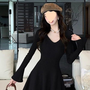 黑色【V领喇叭袖高腰短裙/辣妹穿搭】