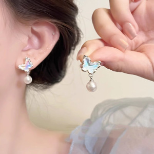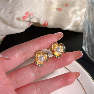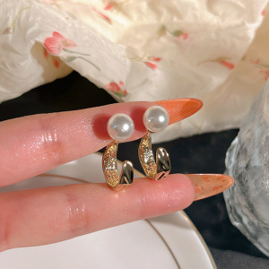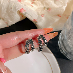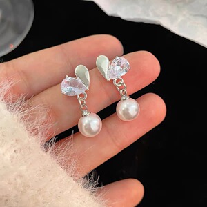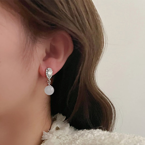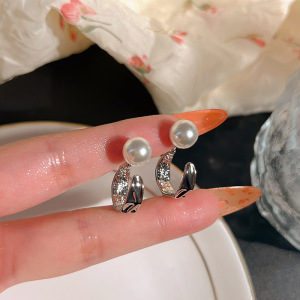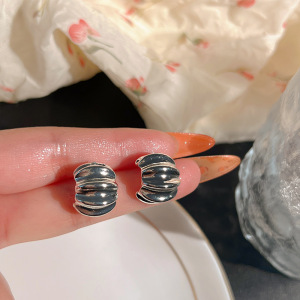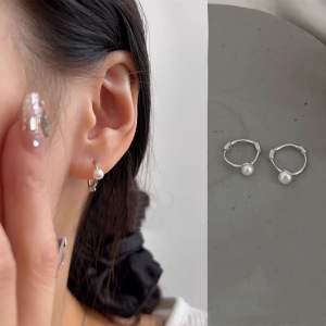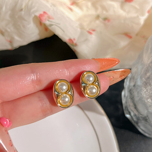 S925 シルバー針ラウンドパールイヤリングフレンチレトロ気質イヤリングライト高級個性ニッチデザインイヤリング