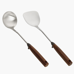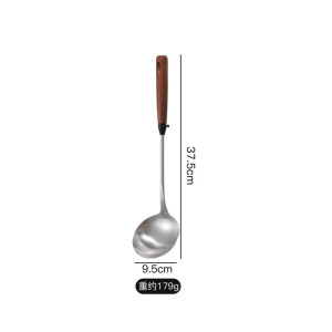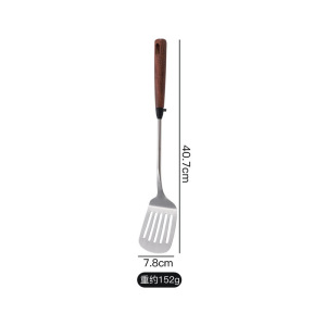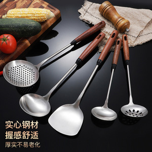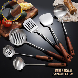 304 ステンレス鋼のスパチュラスプーン家庭用無垢材ノンスリップハンドルフライパンスプーン調理キッチン用品セットフライパンスプーン