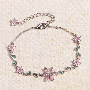 クロスボーダーかわいい甘い絶妙なジルコン花びらブレスレットブレスレットファッション葉花ペンダントブレスレット女性のための