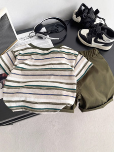 新しいスタイルの男の子のポロシャツ子供用ベビーハンサムツーピース子供服男の子夏半袖スーツ卸売