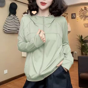 冰丝速干晒衣女外穿2025年夏季妈妈装长袖连帽晒服女士晒衫