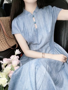桐と月|南湖翔湾|新しい中国風の絞り染め中空ウエストチャイナドレス夏の女性用