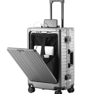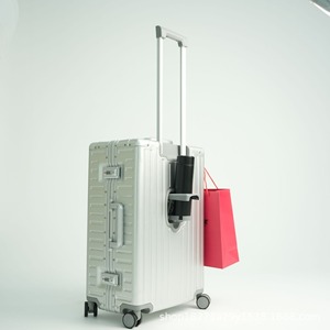 新しいアルミニウムマグネシウム合金ビジネス 20inch 機内持ち込み用スーツケース、フロントオープンカップホルダー、金属製ローラー付きトラベルケース 24inch ビジネスケース
