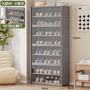 【防塵透明下駄箱】グレー-9段64