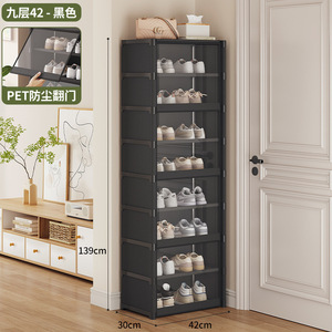 【防塵透明下駄箱】お手頃ブラック-9段42